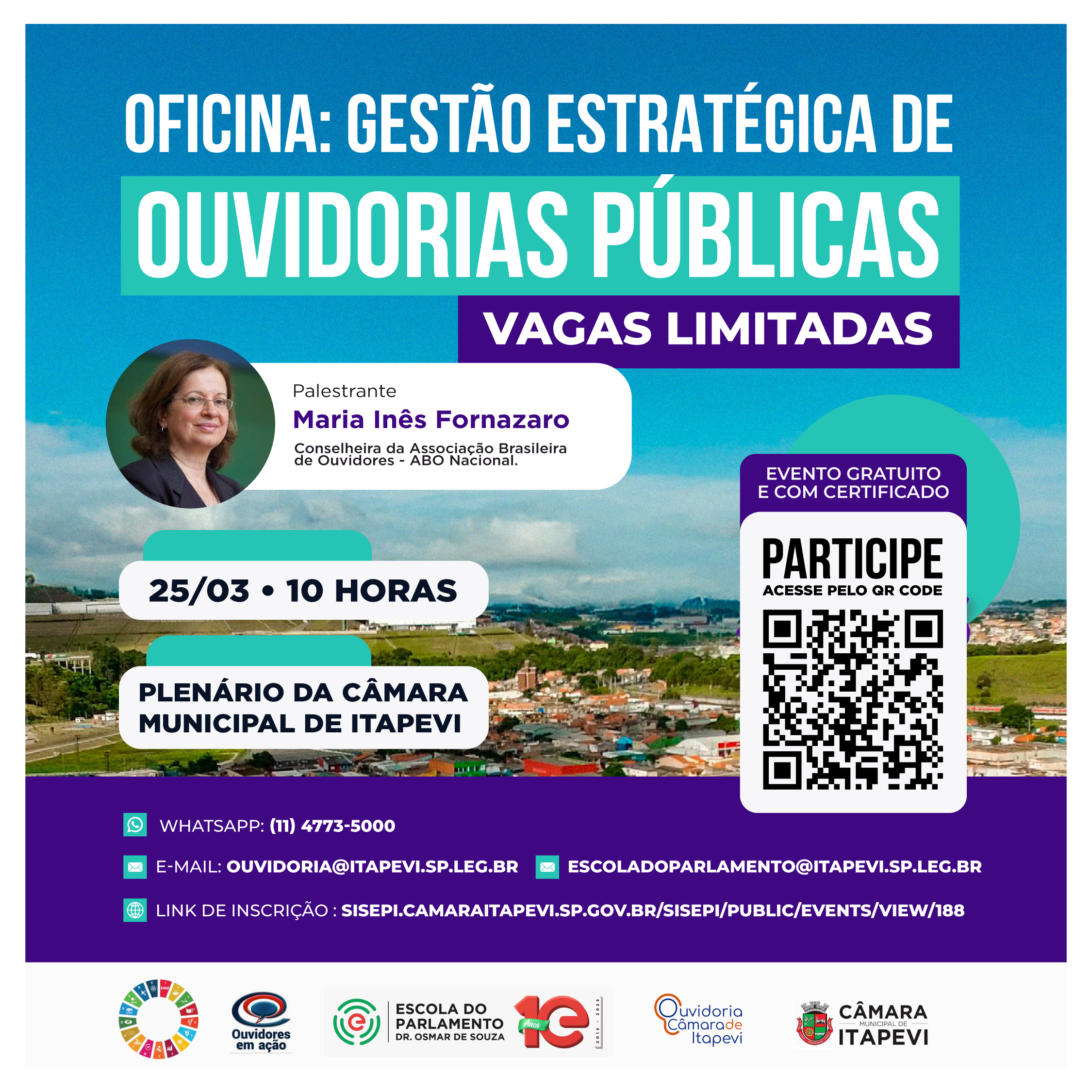 25/03, às 10h, no plenário da Câmara Municipal de Itapevi